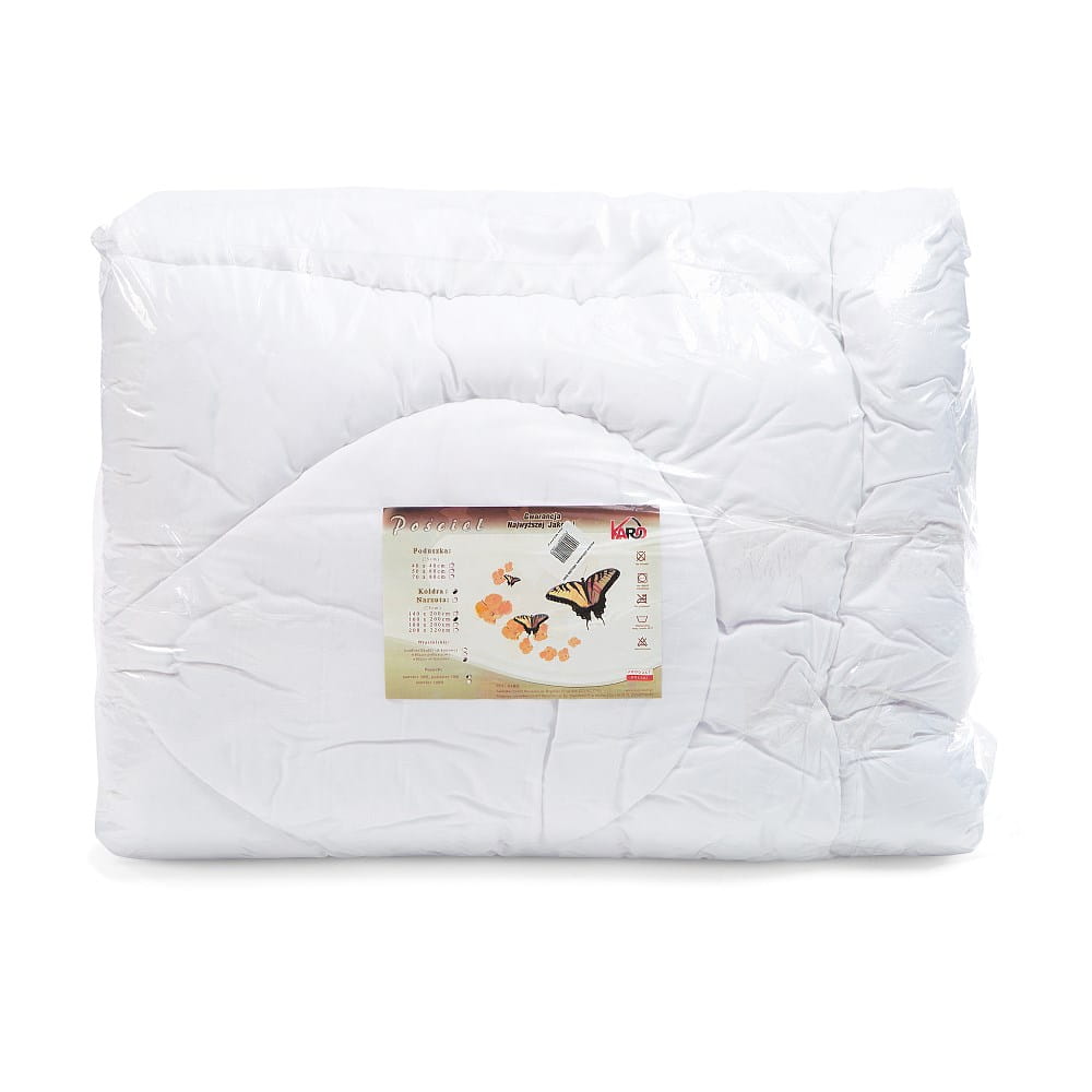 Kołdra silikonowa rozmiar 160x200 biała całoroczna ciepła i przewiewna, a także wyjątkowo trwała. To produkt dobrej jakości za rozsądną cenę. Przez długi czas zachowuje swoje walory użytkowe. Połączona wysoko sprężystym włóknem silikonowym, nie zbija się, długo zachowuje swoje właściwości. Wykończenie kołdry jest precyzyjne i dokładne. Dużym atutem kołdry jest cena. Idealnie sprawdzi się na działkę. Produkt polski.