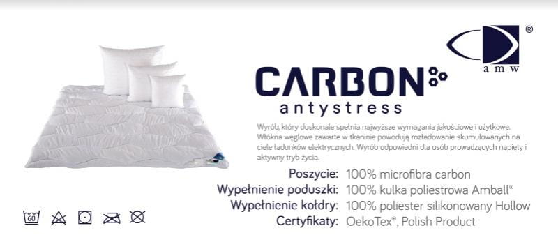 Produkty z linii Carbon Antistress, cechują się tkaniną wykończoną włóknami węglowymi, które powodują rozładowanie skumulowanych na ciele ładunków elektrycznych. Jest idealnym produktem dla osób prowadzących napięty tryb życia. Pozwala rozładować codzienny stres i zapewnia spokojny oraz przyjemny sen.