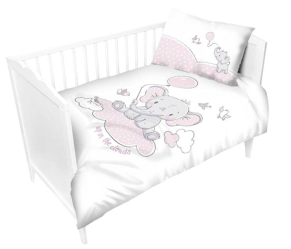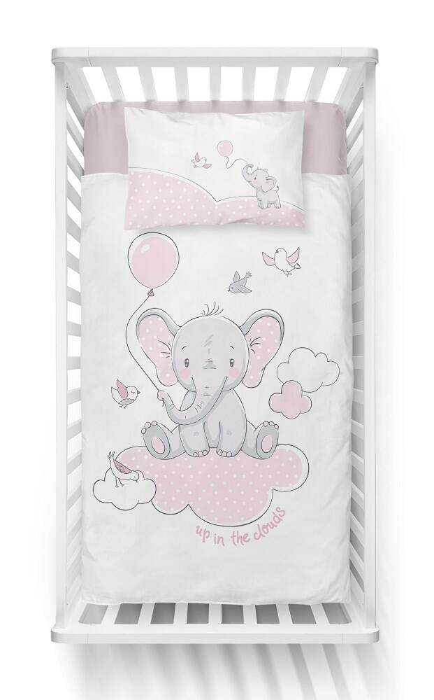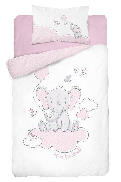 Pościel bawełniana 100x135 Słonik 3149 A różowy biała ptaszki chmurki do łóżeczka dziecięca poszewka 40x60