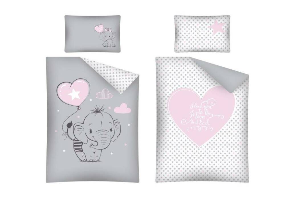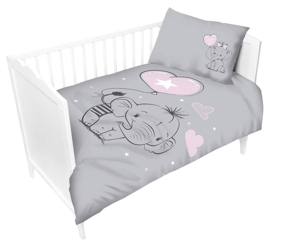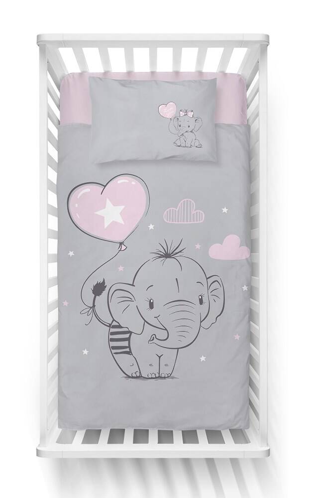 Pościel bawełniana 100x135 Słonik 2930 A szara różowa Lulumi balonik serduszko gwiazdki do łóżeczka dziecięca poszewka 40x60