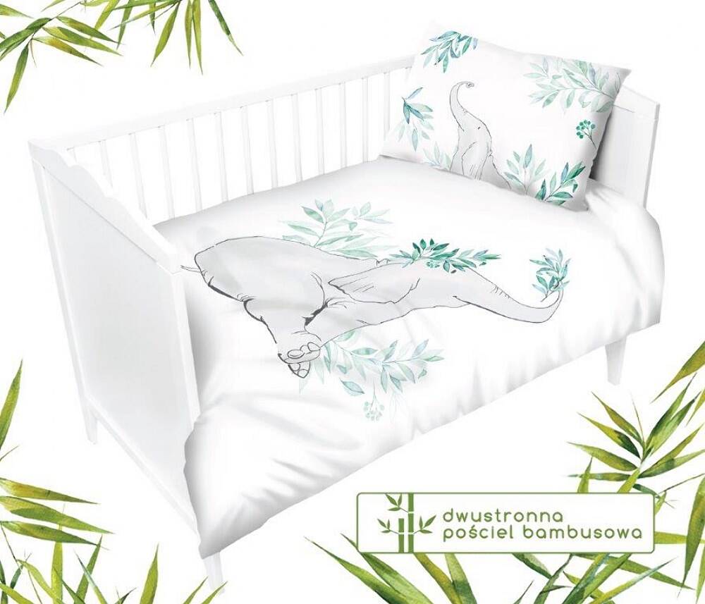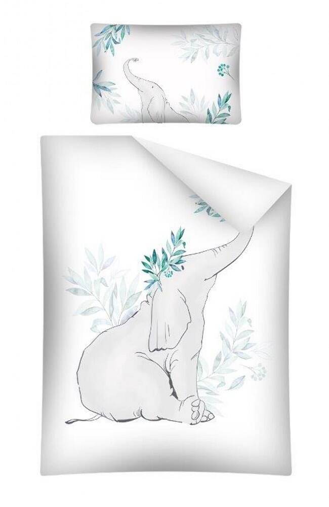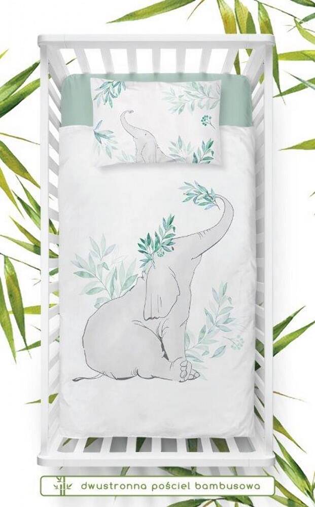 Pościel bambusowa 100x135 Słoń liście biała turkusowa ciemna do łóżeczka 3045 B dwustronna