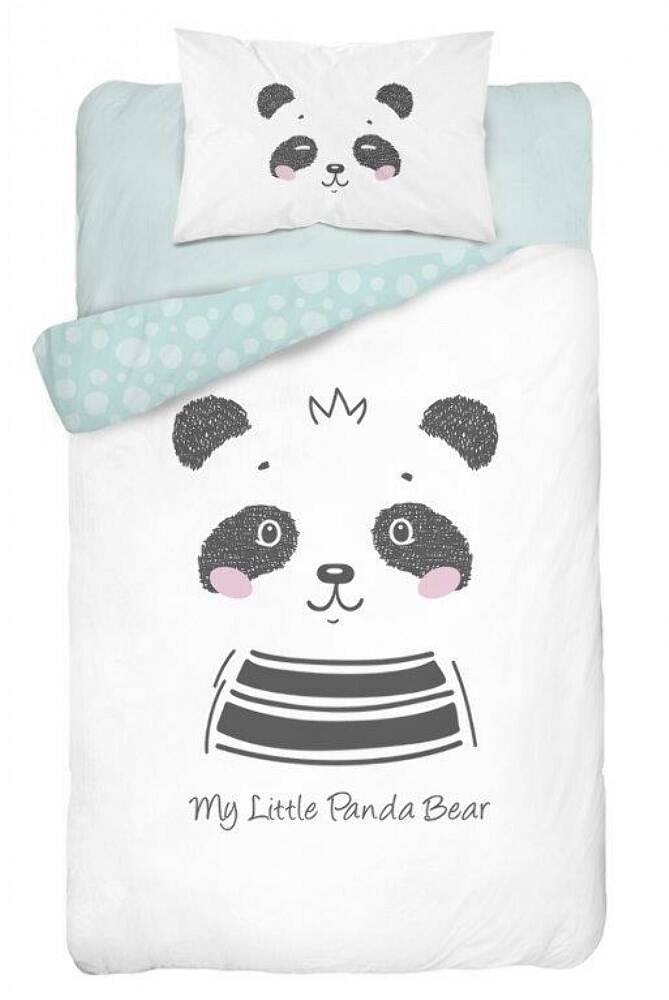 Pościel bambusowa 100x135 Miś Panda 3278 A biała miętowa do łóżeczka dwustronna poszewka 40x60
