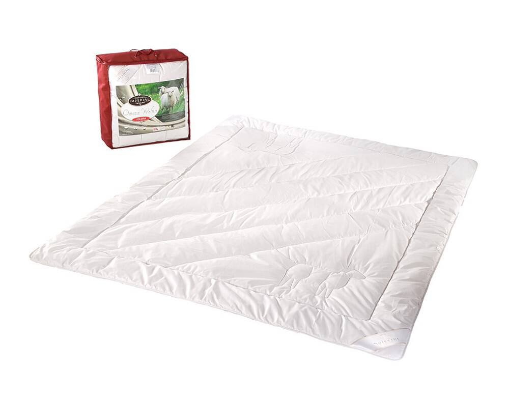 Kołdra wełniana 160x200cm. Imperial Owcza Wełna 1000g AMW, to kołdra wypełniona jednym z najlepszych naturalnych wypełnień, wykorzystywanych od pokoleń. Dzięki swoim właściwościom ma zastosowanie w rehabilitacji leczniczej. Najwyższej jakości wełna doskonale przepuszcza powietrze oraz posiada zdolność utrzymywania temperatury ciała na stałym poziomie, dając możliwość odpoczynku i snu w komfortowych warunkach. Zapewnia dobrą wentylację sprawiając, że ludzka skóra właściwie oddycha, a organizm jest odpowiednio dotleniony. Dodatkowym atutem produktów jest niezwykle delikatna tkanina poszyciowa ze 100% bawełny, która zapewnia dodatkowe wrażenie.