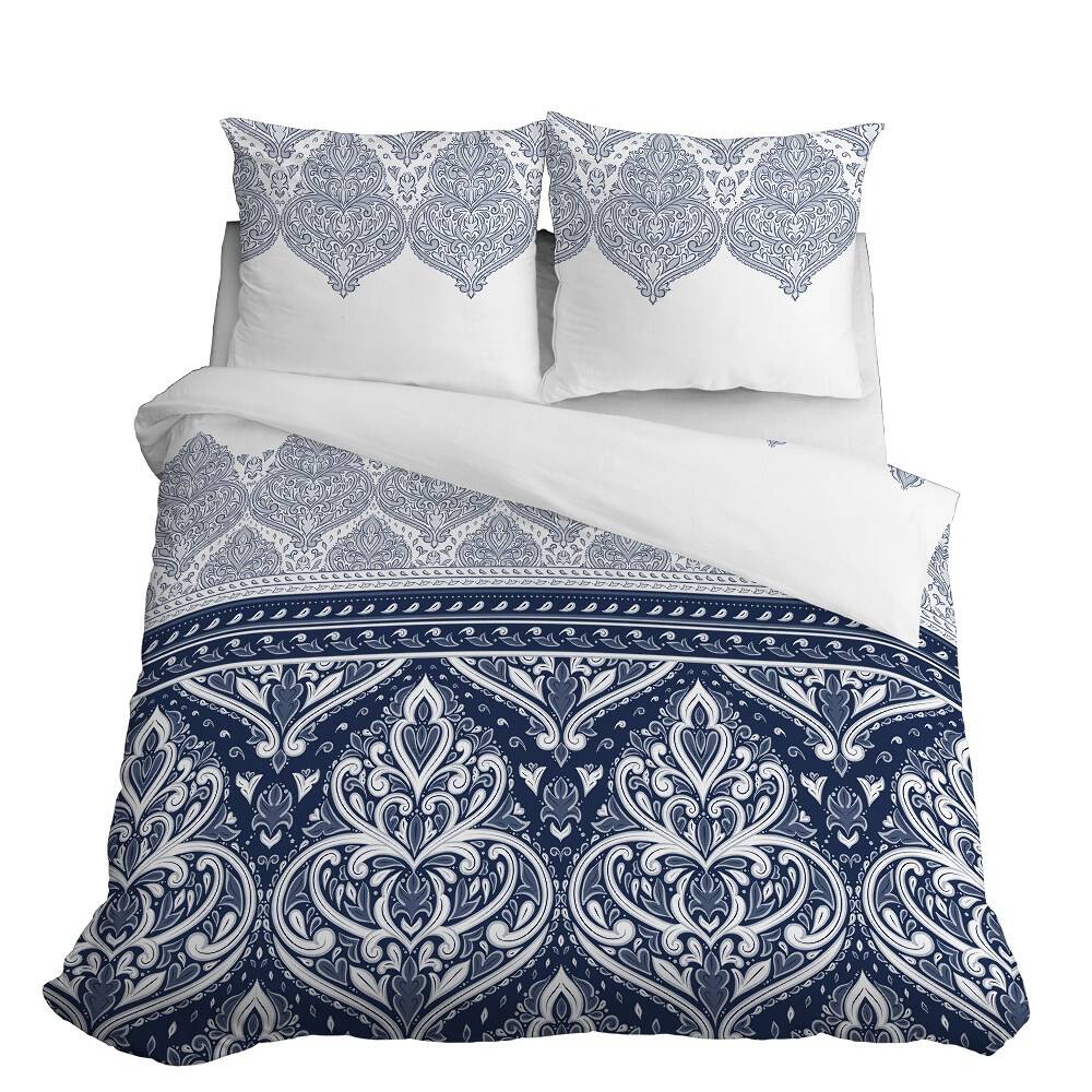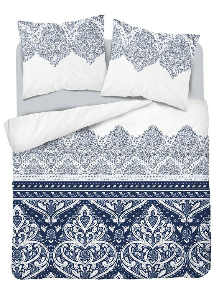 Pościel satynowa 160X200 3397 A Glamour orientalna ornamenty granatowa biała Home Satin Detexpol