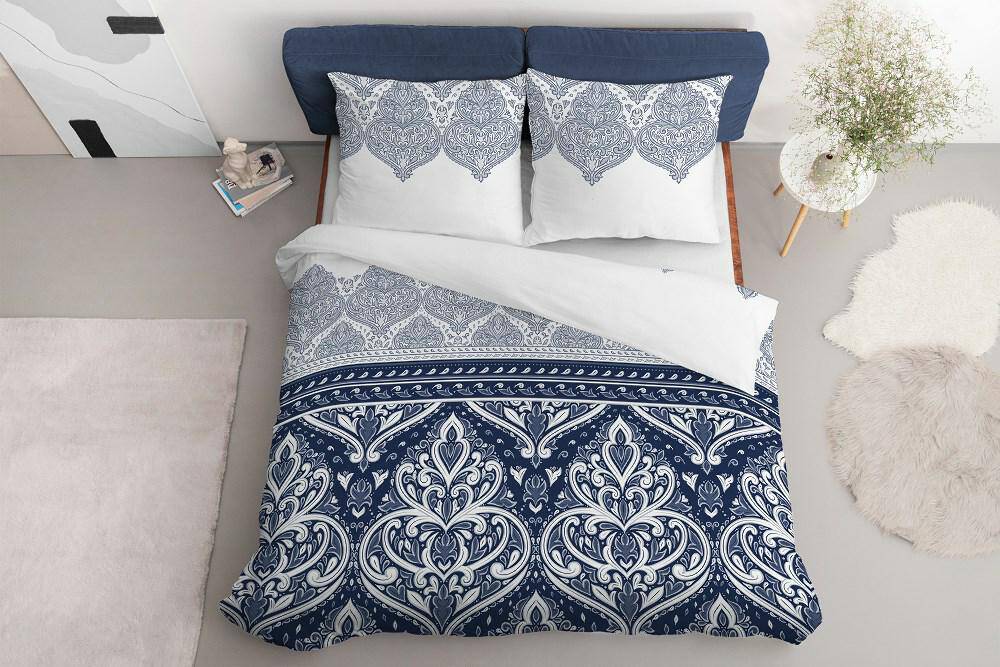 Pościel satynowa 180x200 3827 A Glamour biała granatowa ornamenty orientalna Home Satin 4