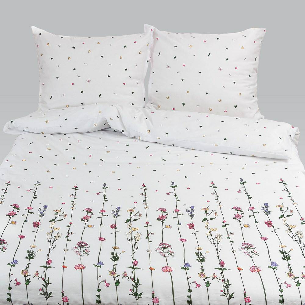 Pościel satynowa 200x220 Laura 2 18831 biała kolorowe kwiatki
